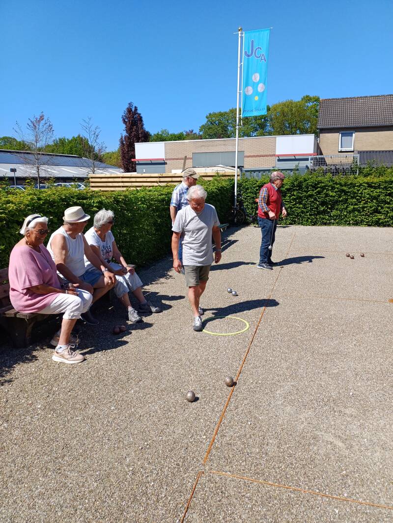Op 4 september werd het kampioenschap Jeu de Boules (individueel) gehouden. Een geweldige opkomst van 16 leden van onze vereniging namen het tegen elkaar op. Hierdoor kon op alle 4 beschikbare banen 3 ronden worden gespeeld. Door loting werd bepaald tegen wie en met wie werd gespeeld. Na 2 ronden werd er genoten van de heerlijke, meegenomen koffie. Na 3 ronden bleek, dat er 4 leden waren, die 3partijen hadden gewonnen. Dit waren Trudy Rademaker, Ria Coers, Sieger Hoogenberg en Riemer Wolters. Daar Sieger en Riemer beiden het hoogste puntensaldo hadden, werd er een barrage tot 5 punten gespeeld. Deze werd door Riemer gewonnen en mag zich voor een jaar kampioen van de club noemen. Eindstand: 1. Riemer, 2. Sieger, 3. Ria, 4. Trudy. Al met al een heel geslaagde en fijne middag.